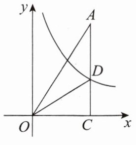 3. 如图,$Rt\triangle AOC$的直角边$OC$在$x$轴上,$\angle ACO = 90^{\circ}$,反比例函数$y = \frac{k}{x}$经过另一条直角边$AC$的中点$D$,$S_{\triangle AOC} = 3$,则$k =$( )