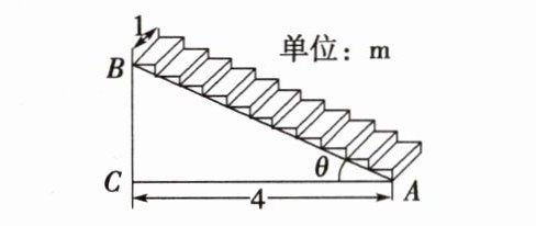 7. 一座楼梯的示意图如图所示,BC 是铅垂线,AC 是水平线,BA 与 AC 的夹角为θ. 现要在楼梯上铺一条地毯,已知 AC = 4 m,楼梯宽度为 1 m,则地毯的面积至少需要( )
