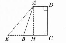 8. 如图,一个直角梯形的堤坝坡长 AB 为 6 米,斜坡 AB 的坡角为 60°,为了改善堤坝的稳固性,准备将其坡角改为 45°,则调整后的斜坡 AE 的长度为( )
