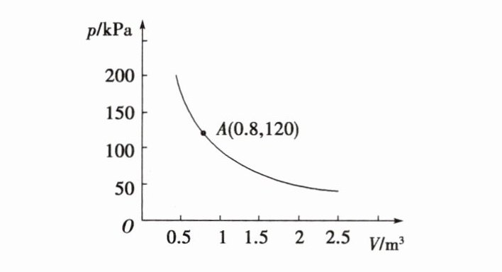 (3)当p = 140 kPa时,V = $\frac{96}{140}$≈0.69(m³),所以为了安全起见,气体的体积应不小于0.69 m³。