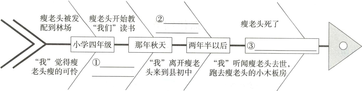 ①“我们”渐渐被瘦老头迷住了 ②瘦老头告诉“我们”要去县里读中学 ③放寒假到家的当天(1点1分)