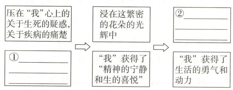 3.(教材母题变式)面对紫藤萝瀑布,“我”的情感发生了怎样的变化?根据提示,完善下面的思维导图。