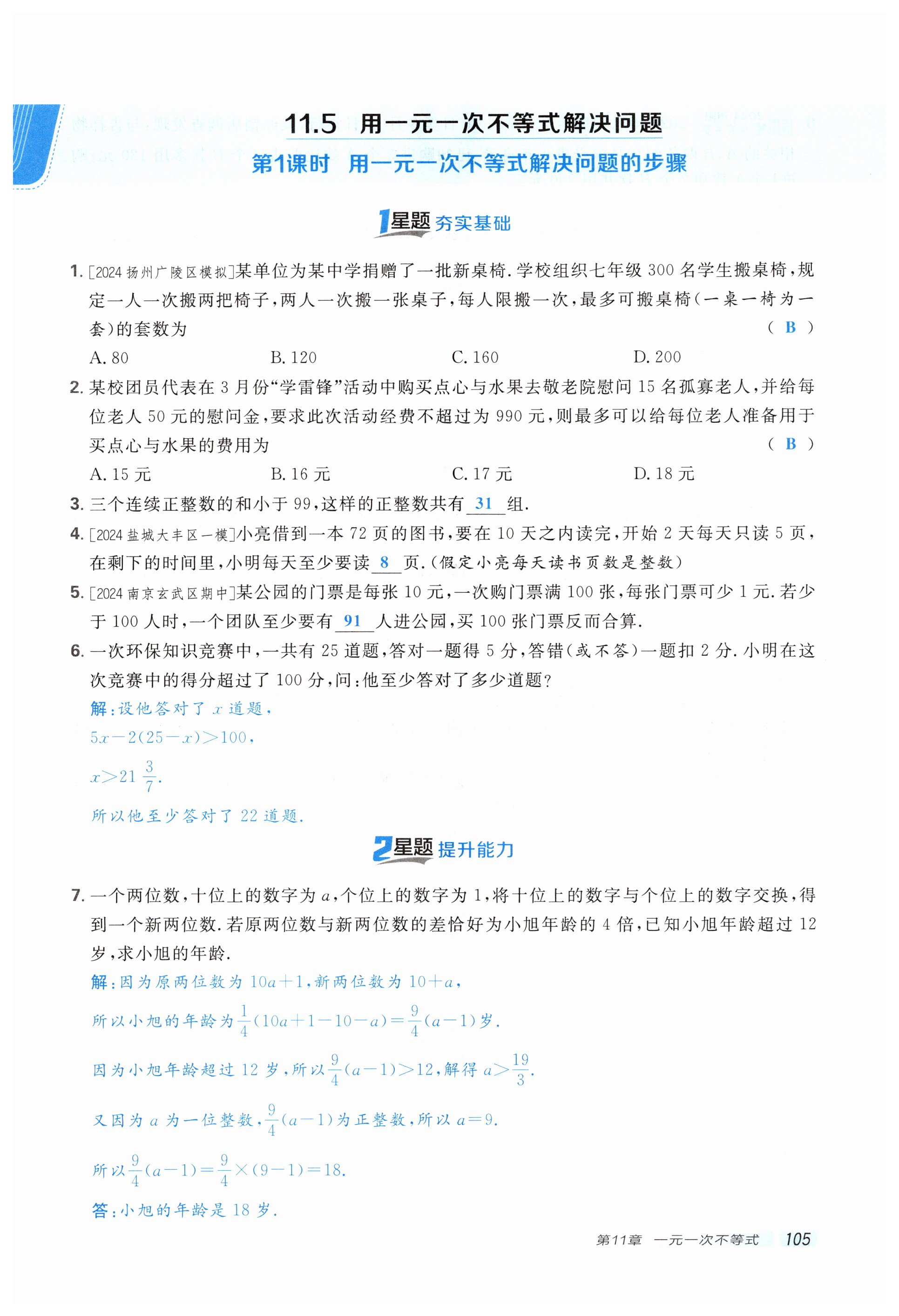 注:目前有些书本章节名称可能整理的还不是很完善,但都是按照顺序排列的,请同学们按照顺序仔细查找。练习册 2025年点拨训练七年级数学下册苏科版 答案主要是用来给同学们做完题方便对答案用的,请勿直接抄袭。