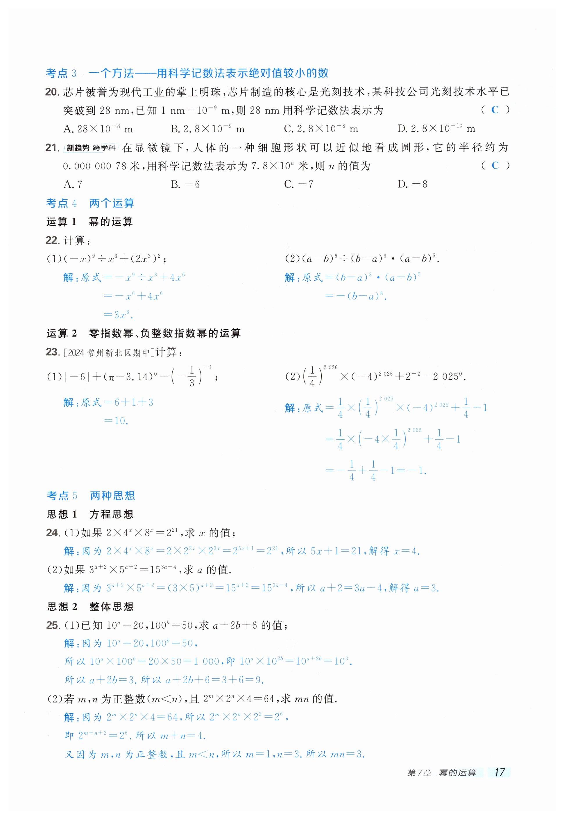 注:目前有些书本章节名称可能整理的还不是很完善,但都是按照顺序排列的,请同学们按照顺序仔细查找。练习册 2025年点拨训练七年级数学下册苏科版 答案主要是用来给同学们做完题方便对答案用的,请勿直接抄袭。
