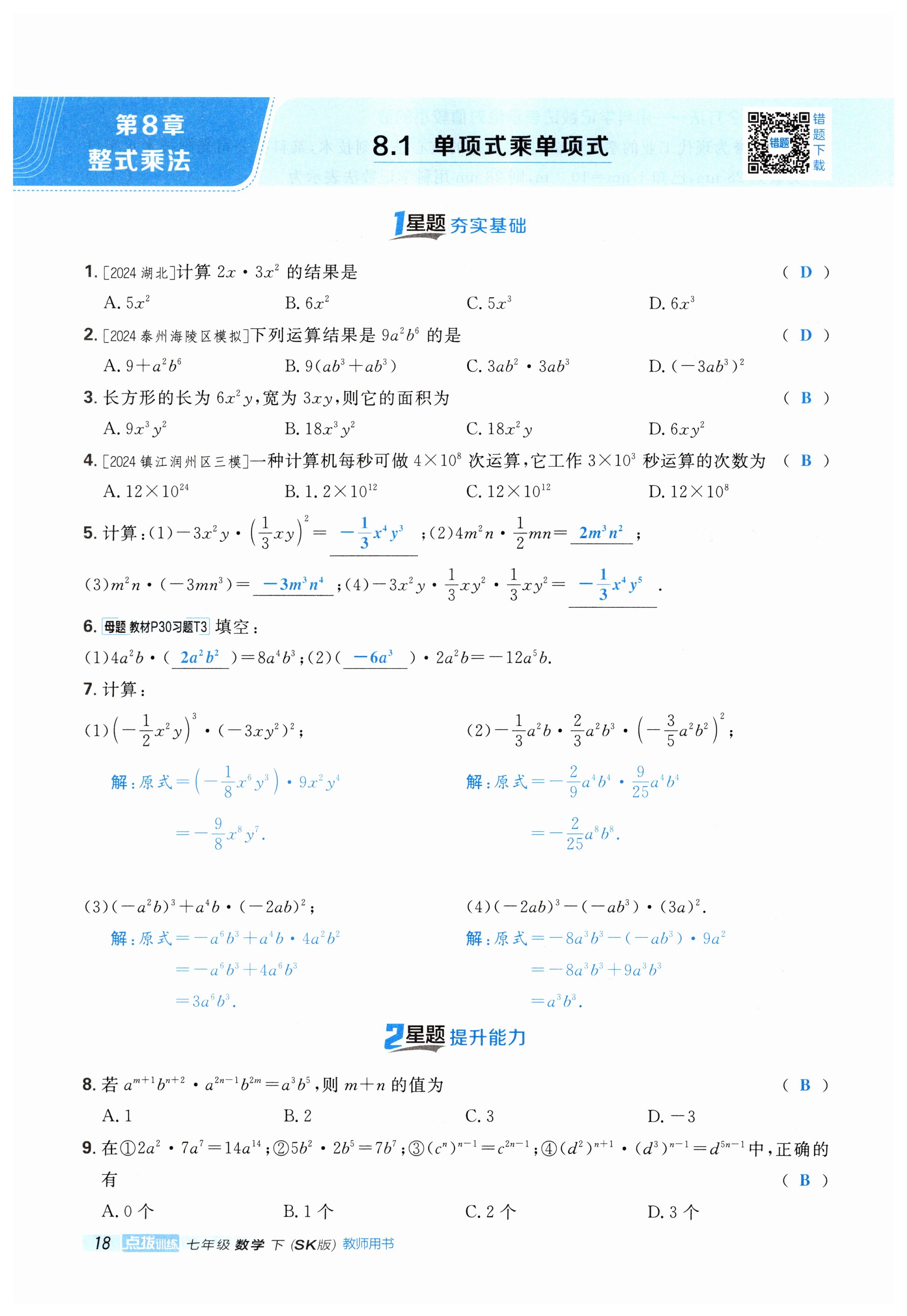 注:目前有些书本章节名称可能整理的还不是很完善,但都是按照顺序排列的,请同学们按照顺序仔细查找。练习册 2025年点拨训练七年级数学下册苏科版 答案主要是用来给同学们做完题方便对答案用的,请勿直接抄袭。