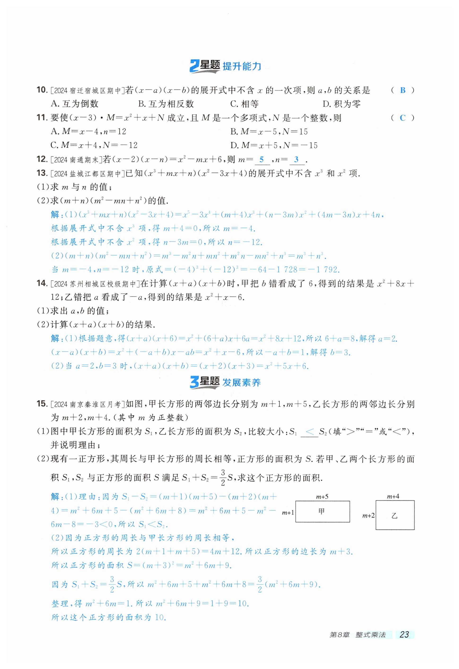 注:目前有些书本章节名称可能整理的还不是很完善,但都是按照顺序排列的,请同学们按照顺序仔细查找。练习册 2025年点拨训练七年级数学下册苏科版 答案主要是用来给同学们做完题方便对答案用的,请勿直接抄袭。