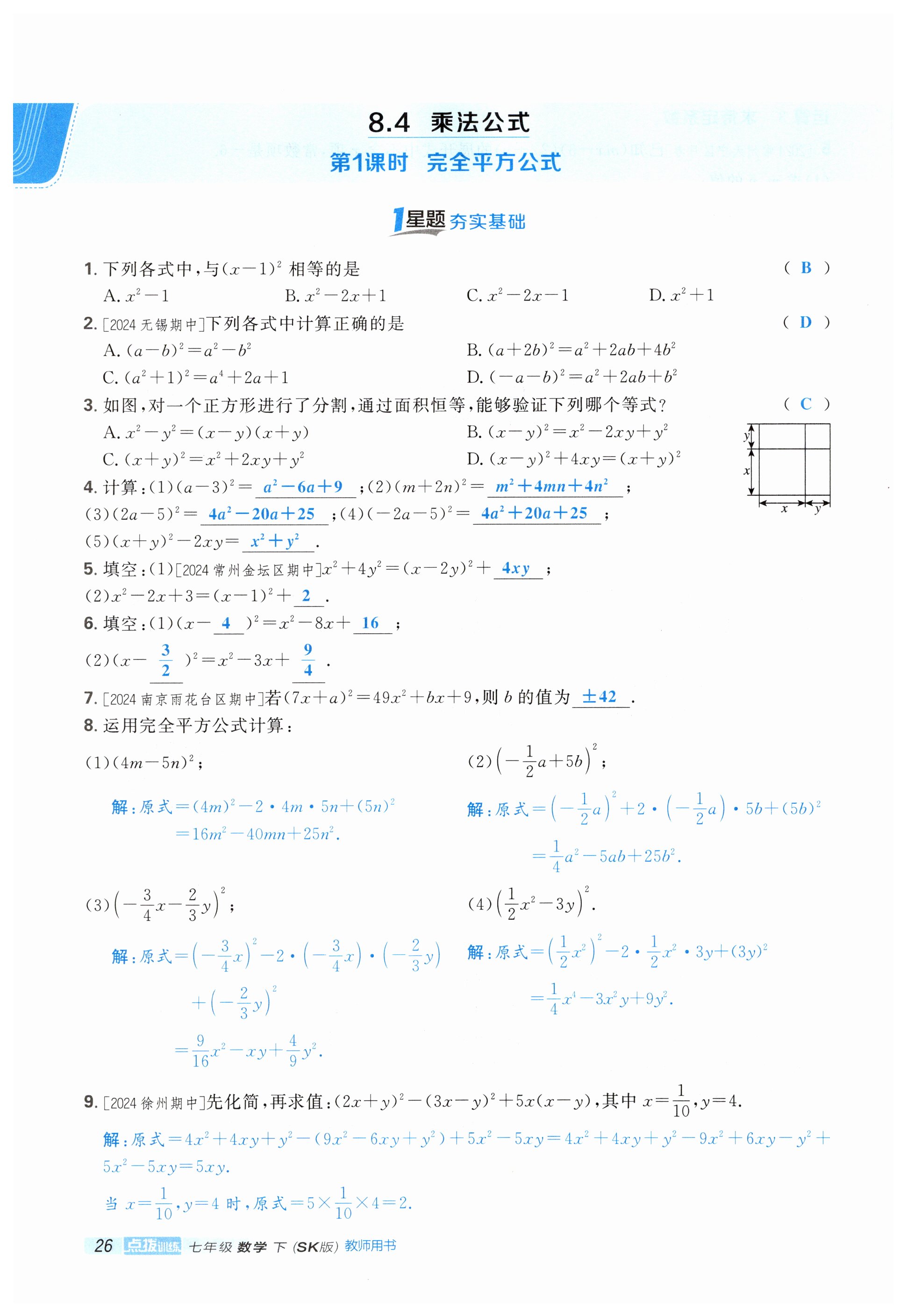 注:目前有些书本章节名称可能整理的还不是很完善,但都是按照顺序排列的,请同学们按照顺序仔细查找。练习册 2025年点拨训练七年级数学下册苏科版 答案主要是用来给同学们做完题方便对答案用的,请勿直接抄袭。