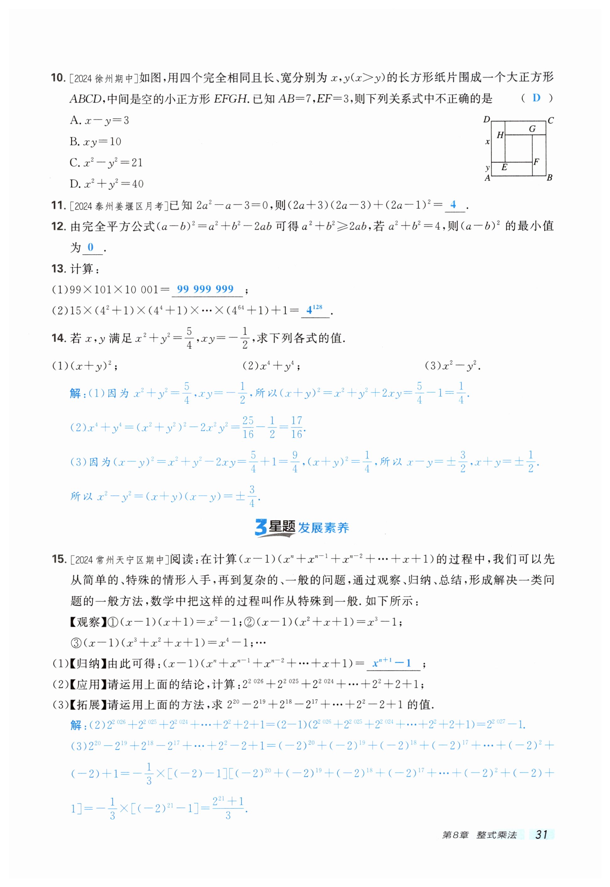 注:目前有些书本章节名称可能整理的还不是很完善,但都是按照顺序排列的,请同学们按照顺序仔细查找。练习册 2025年点拨训练七年级数学下册苏科版 答案主要是用来给同学们做完题方便对答案用的,请勿直接抄袭。