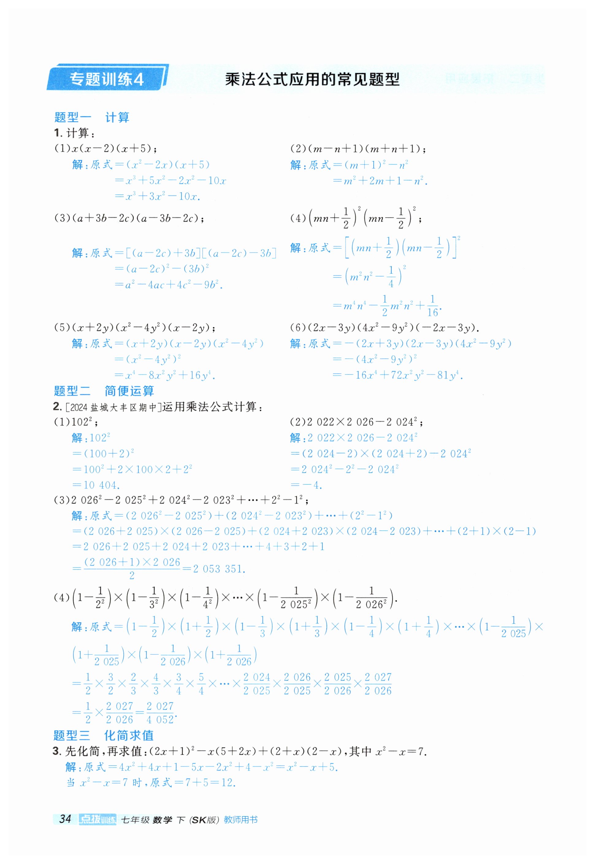 注:目前有些书本章节名称可能整理的还不是很完善,但都是按照顺序排列的,请同学们按照顺序仔细查找。练习册 2025年点拨训练七年级数学下册苏科版 答案主要是用来给同学们做完题方便对答案用的,请勿直接抄袭。