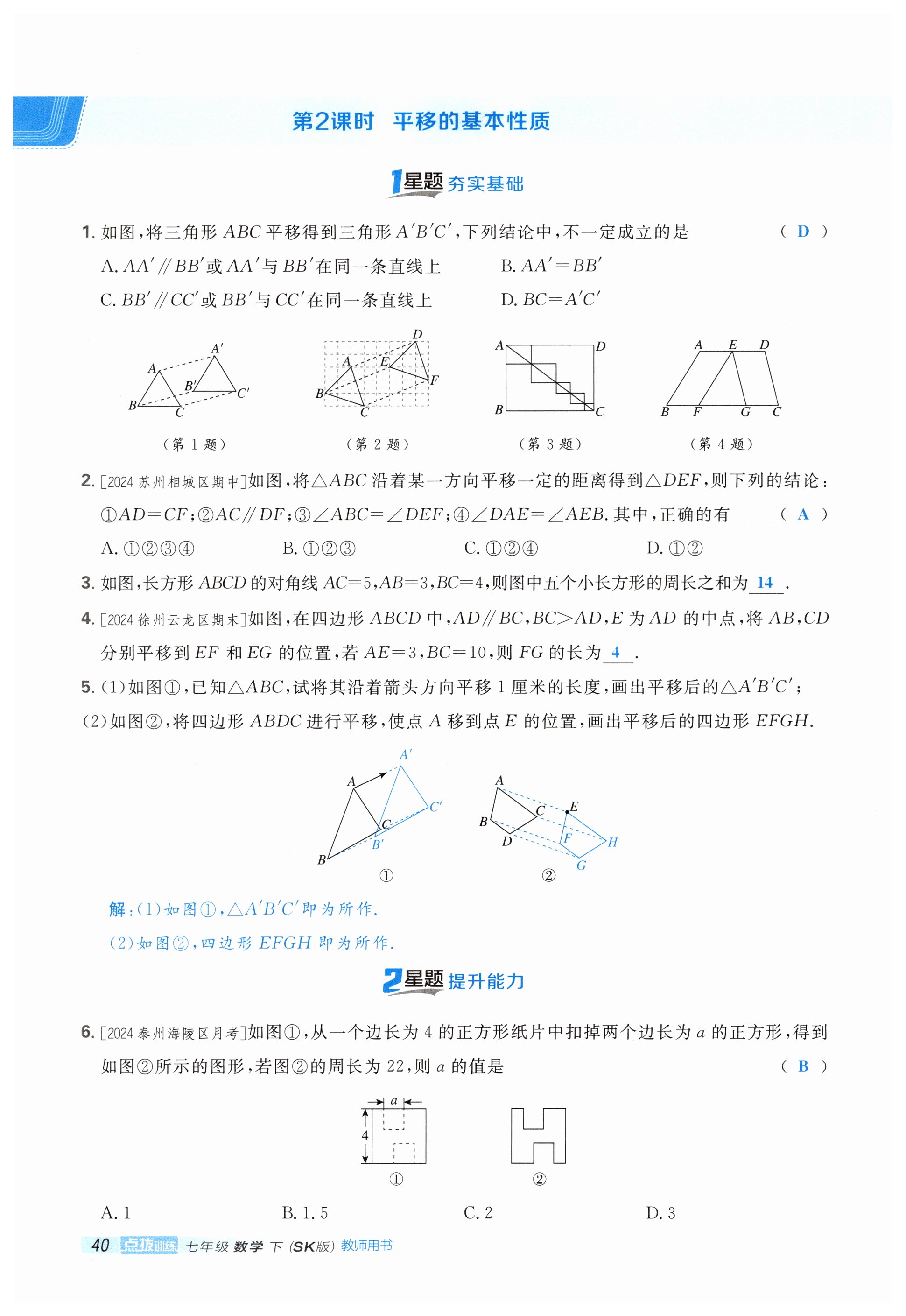 注:目前有些书本章节名称可能整理的还不是很完善,但都是按照顺序排列的,请同学们按照顺序仔细查找。练习册 2025年点拨训练七年级数学下册苏科版 答案主要是用来给同学们做完题方便对答案用的,请勿直接抄袭。
