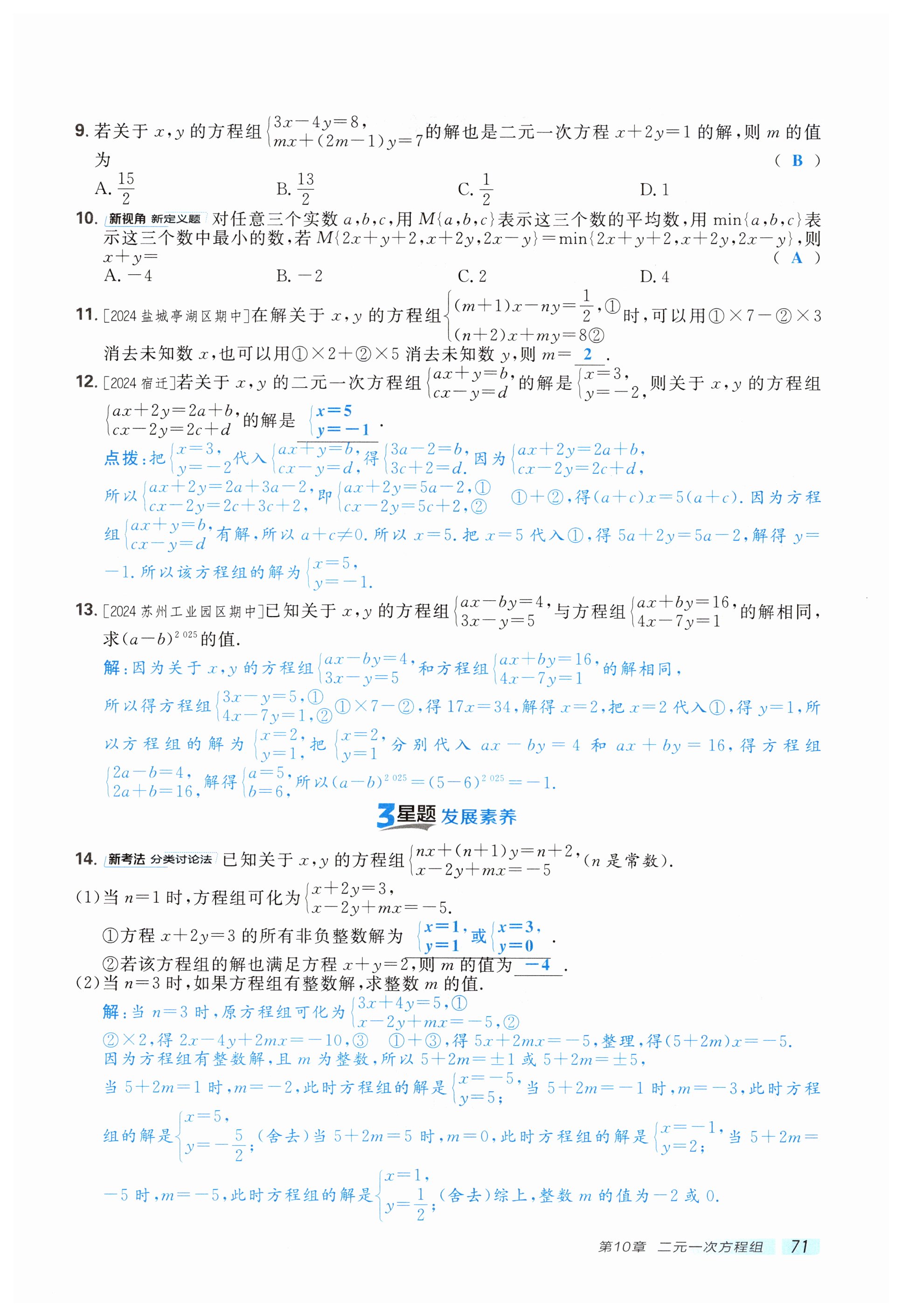 注:目前有些书本章节名称可能整理的还不是很完善,但都是按照顺序排列的,请同学们按照顺序仔细查找。练习册 2025年点拨训练七年级数学下册苏科版 答案主要是用来给同学们做完题方便对答案用的,请勿直接抄袭。