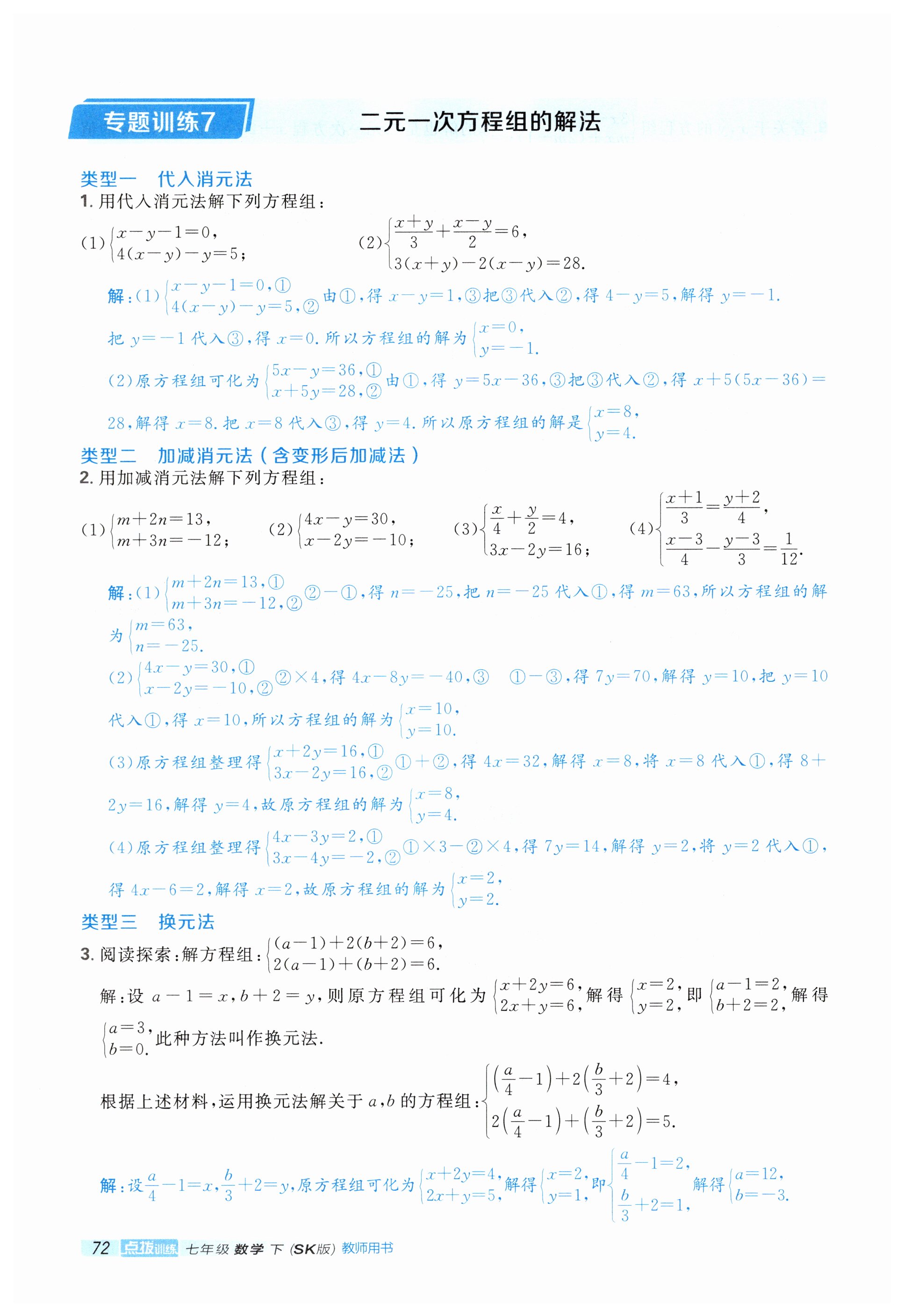 注:目前有些书本章节名称可能整理的还不是很完善,但都是按照顺序排列的,请同学们按照顺序仔细查找。练习册 2025年点拨训练七年级数学下册苏科版 答案主要是用来给同学们做完题方便对答案用的,请勿直接抄袭。