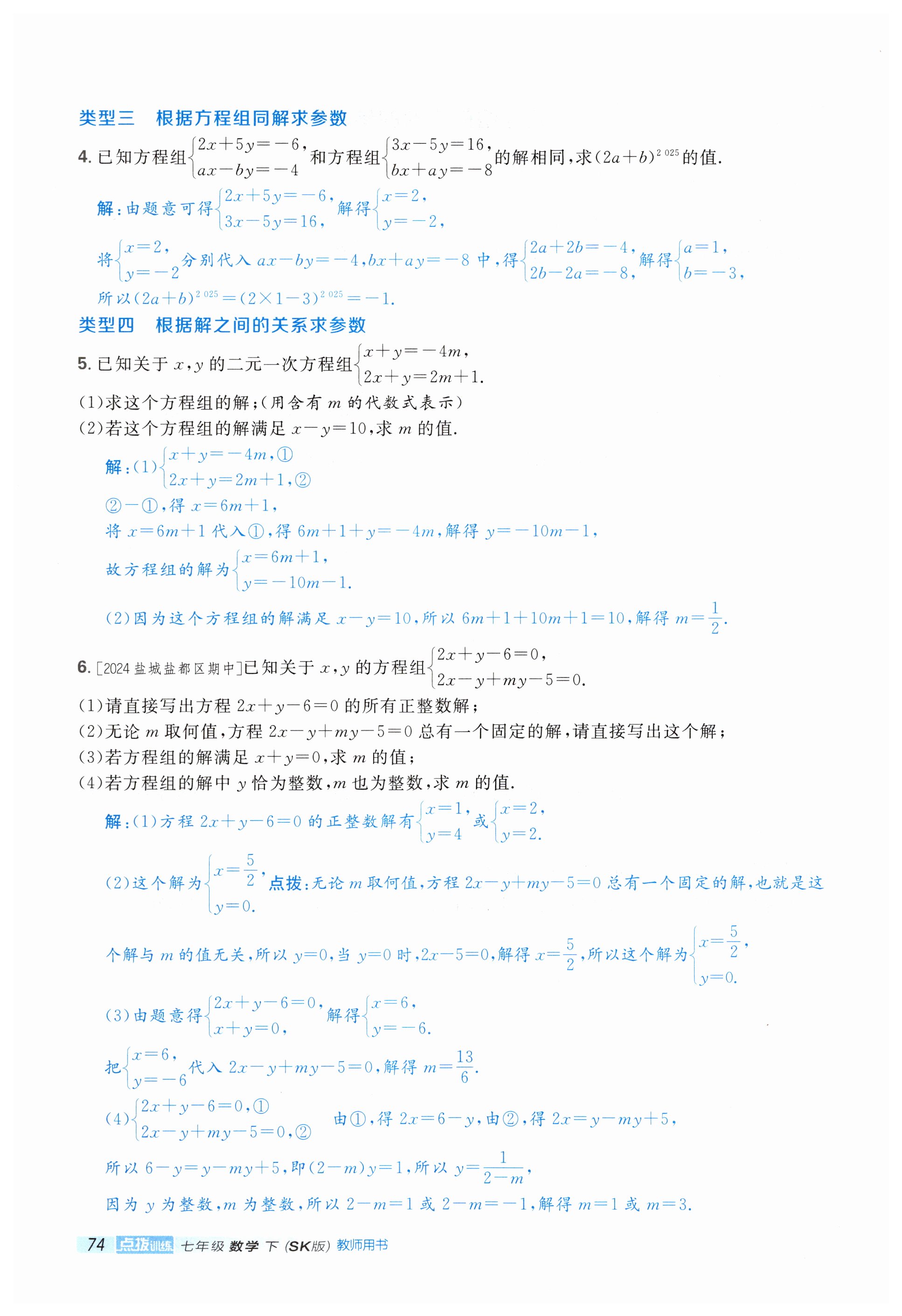 注:目前有些书本章节名称可能整理的还不是很完善,但都是按照顺序排列的,请同学们按照顺序仔细查找。练习册 2025年点拨训练七年级数学下册苏科版 答案主要是用来给同学们做完题方便对答案用的,请勿直接抄袭。