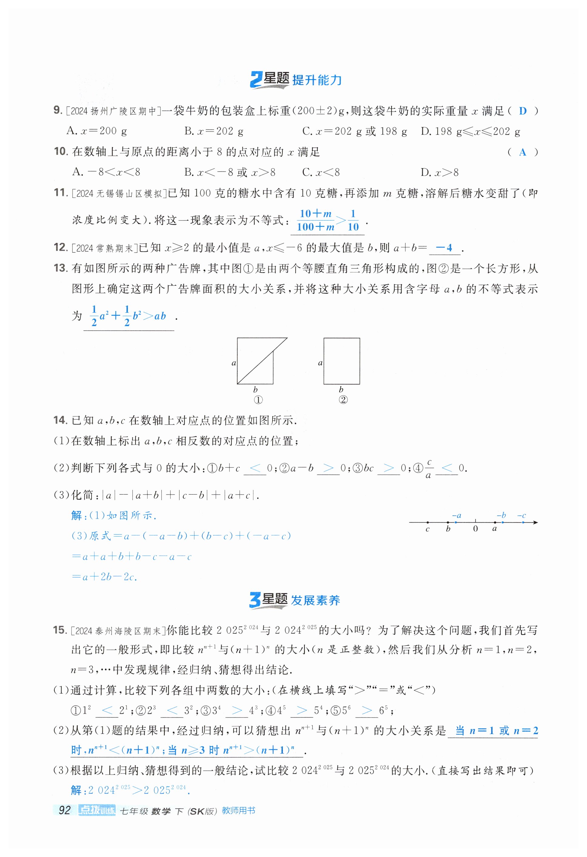 注:目前有些书本章节名称可能整理的还不是很完善,但都是按照顺序排列的,请同学们按照顺序仔细查找。练习册 2025年点拨训练七年级数学下册苏科版 答案主要是用来给同学们做完题方便对答案用的,请勿直接抄袭。
