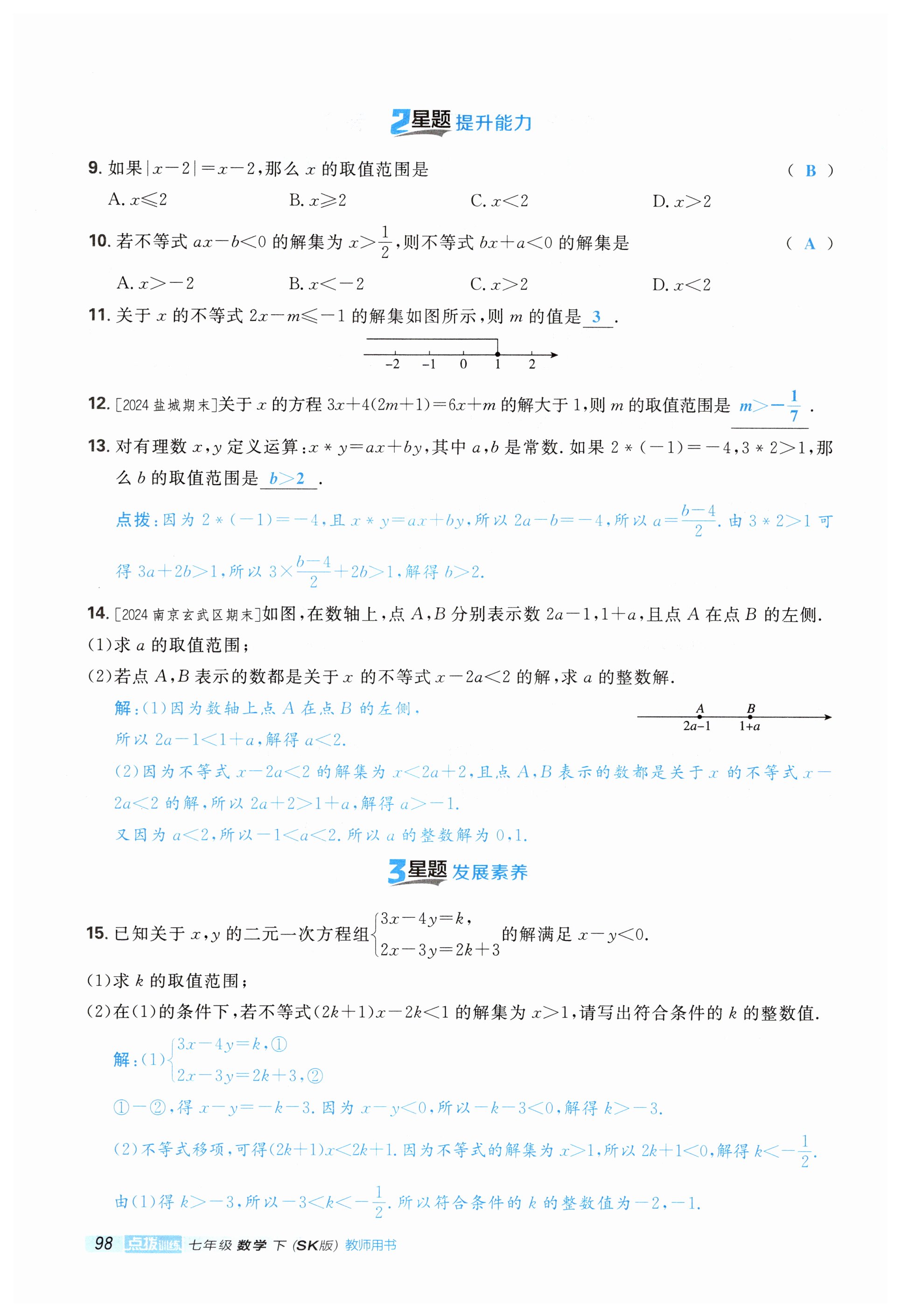 注:目前有些书本章节名称可能整理的还不是很完善,但都是按照顺序排列的,请同学们按照顺序仔细查找。练习册 2025年点拨训练七年级数学下册苏科版 答案主要是用来给同学们做完题方便对答案用的,请勿直接抄袭。