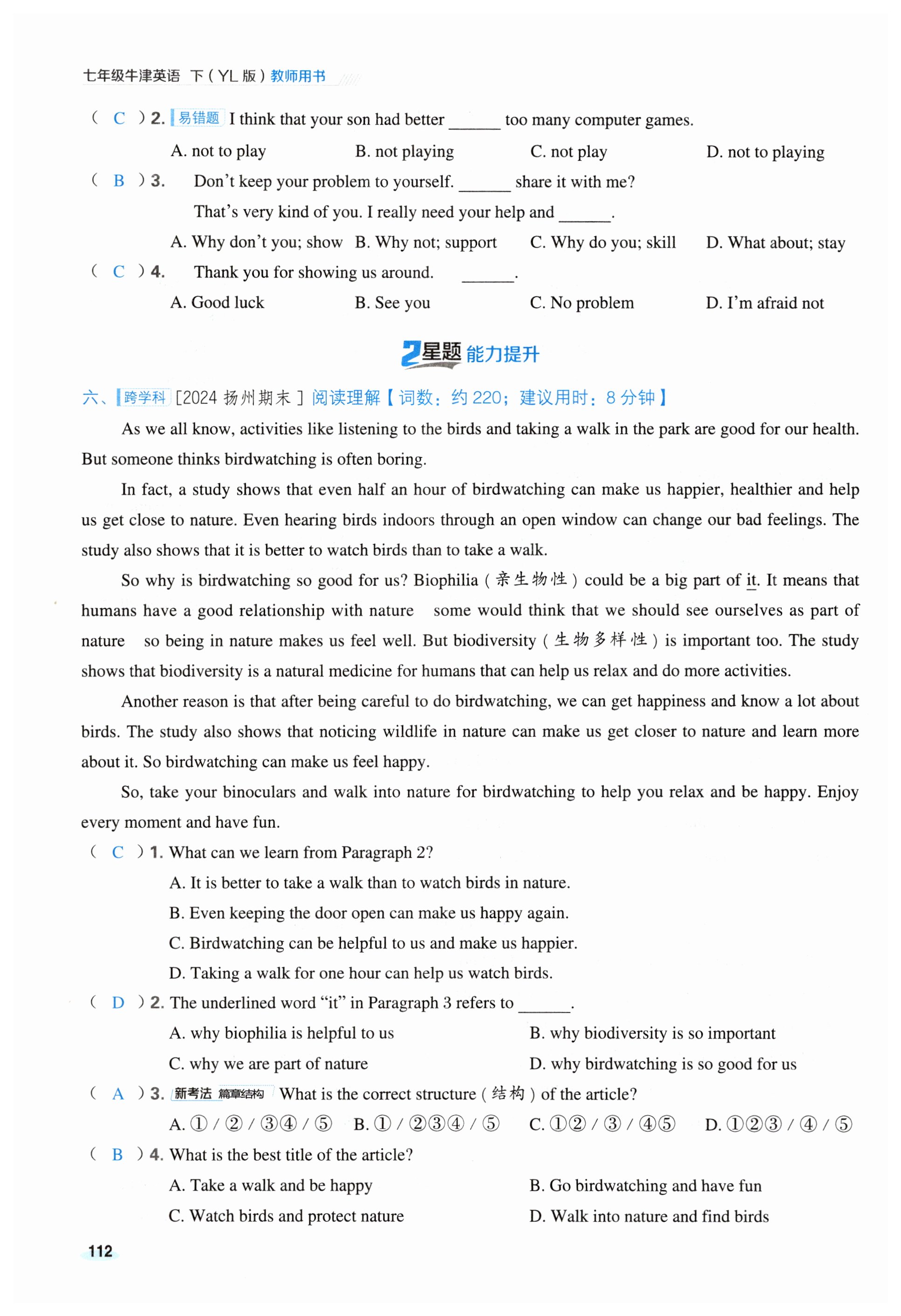 注:目前有些书本章节名称可能整理的还不是很完善,但都是按照顺序排列的,请同学们按照顺序仔细查找。练习册 2025年点拨训练七年级英语下册译林版 答案主要是用来给同学们做完题方便对答案用的,请勿直接抄袭。