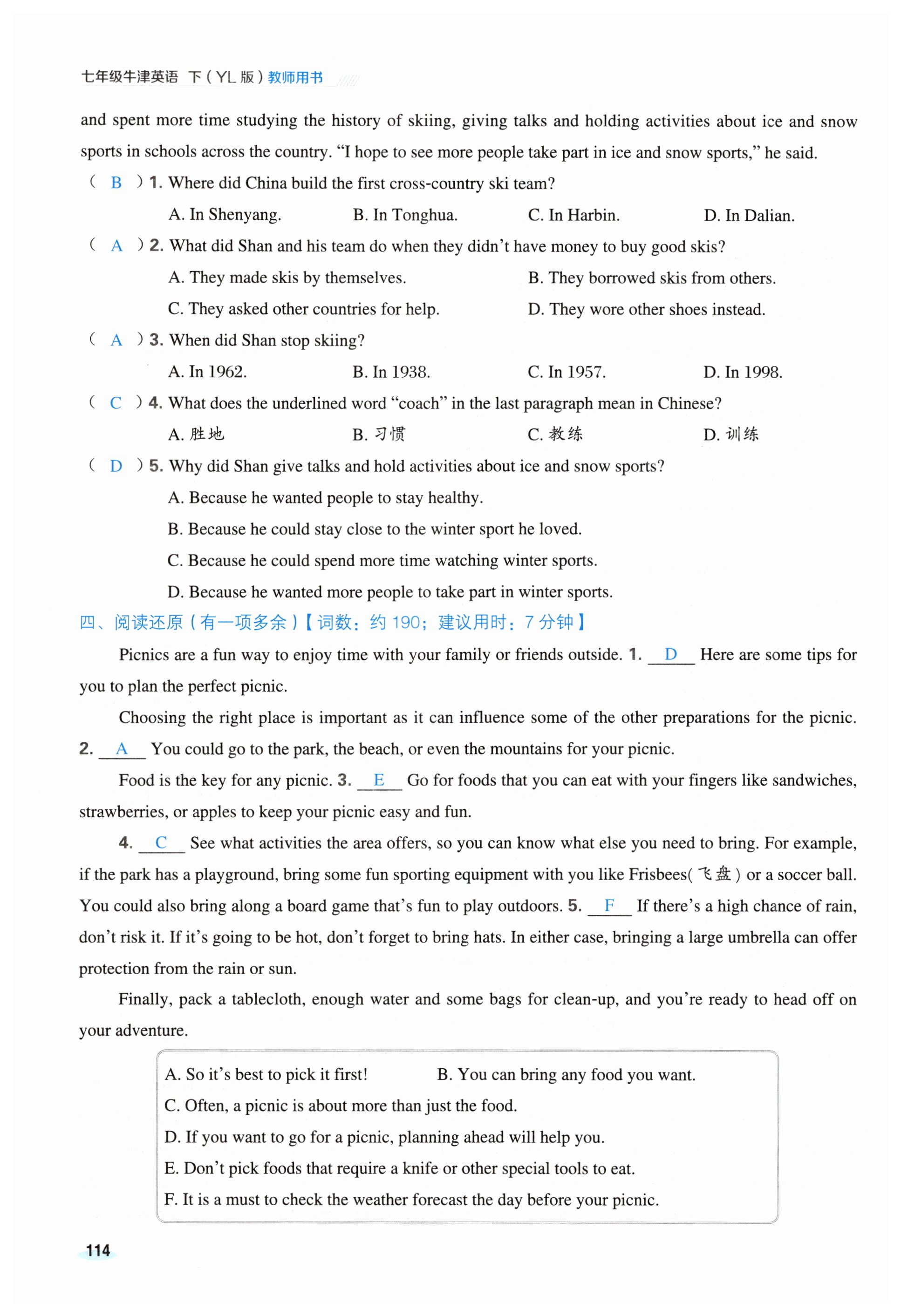 注:目前有些书本章节名称可能整理的还不是很完善,但都是按照顺序排列的,请同学们按照顺序仔细查找。练习册 2025年点拨训练七年级英语下册译林版 答案主要是用来给同学们做完题方便对答案用的,请勿直接抄袭。