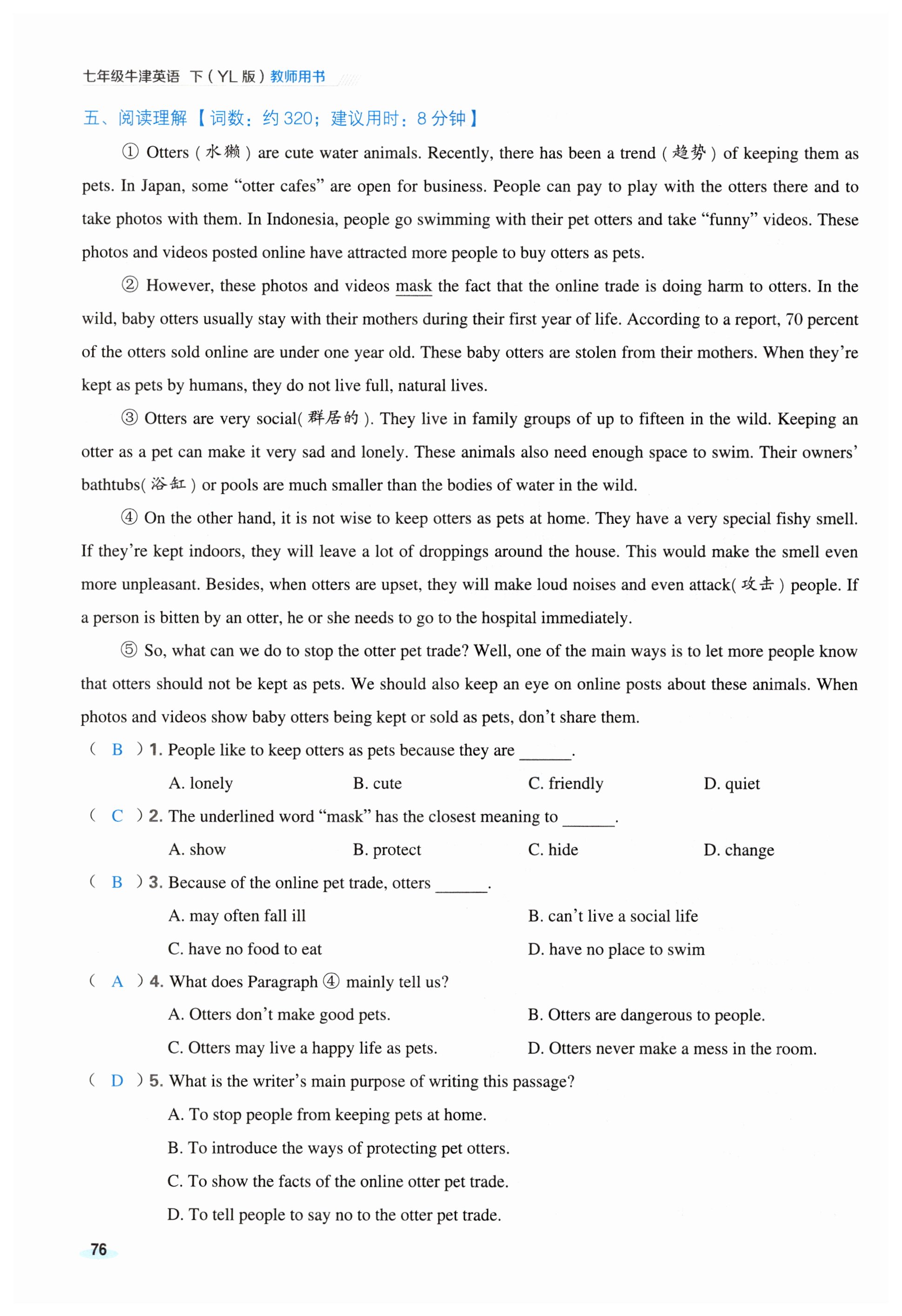 注:目前有些书本章节名称可能整理的还不是很完善,但都是按照顺序排列的,请同学们按照顺序仔细查找。练习册 2025年点拨训练七年级英语下册译林版 答案主要是用来给同学们做完题方便对答案用的,请勿直接抄袭。
