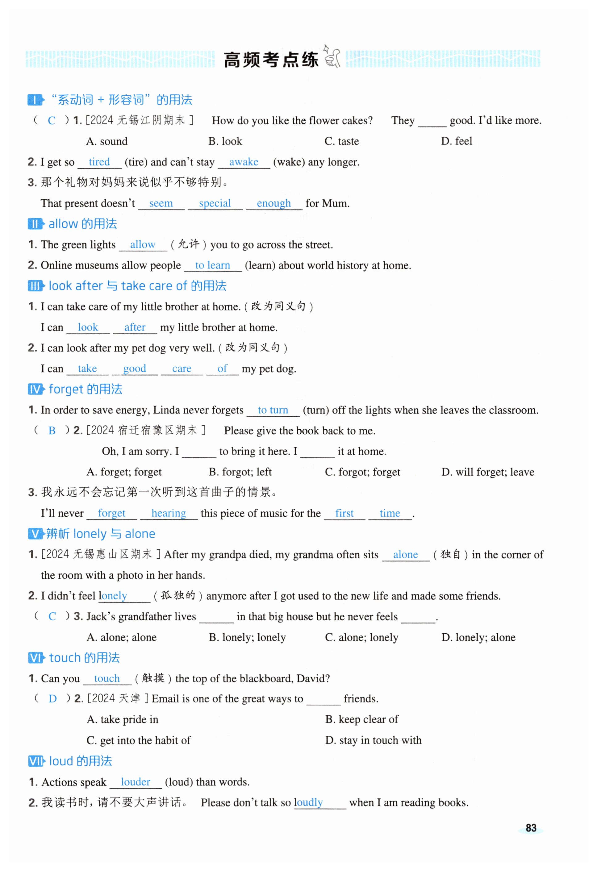 注:目前有些书本章节名称可能整理的还不是很完善,但都是按照顺序排列的,请同学们按照顺序仔细查找。练习册 2025年点拨训练七年级英语下册译林版 答案主要是用来给同学们做完题方便对答案用的,请勿直接抄袭。