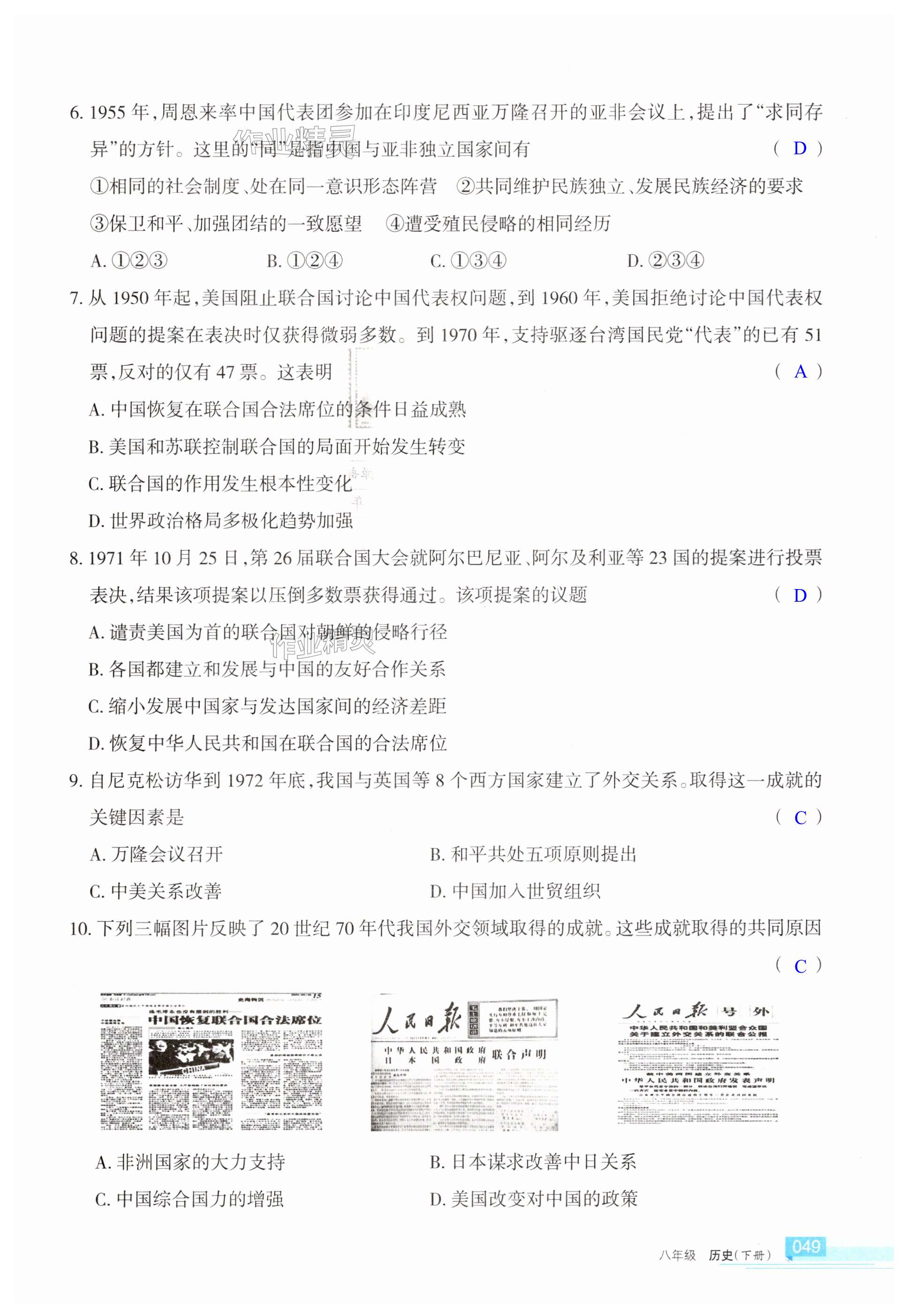 注:目前有些书本章节名称可能整理的还不是很完善,但都是按照顺序排列的,请同学们按照顺序仔细查找。练习册 2025年学习之友八年级历史下册人教版 答案主要是用来给同学们做完题方便对答案用的,请勿直接抄袭。
