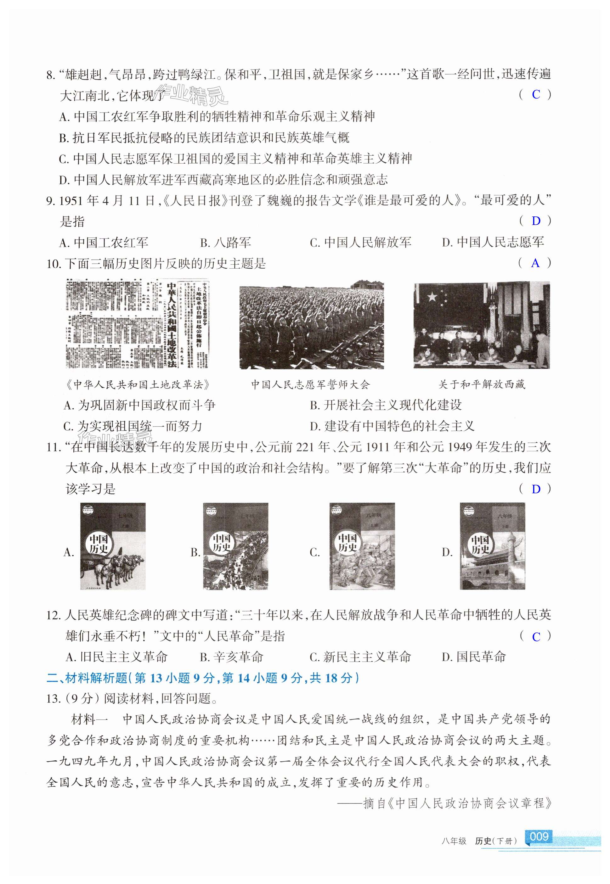 注:目前有些书本章节名称可能整理的还不是很完善,但都是按照顺序排列的,请同学们按照顺序仔细查找。练习册 2025年学习之友八年级历史下册人教版 答案主要是用来给同学们做完题方便对答案用的,请勿直接抄袭。