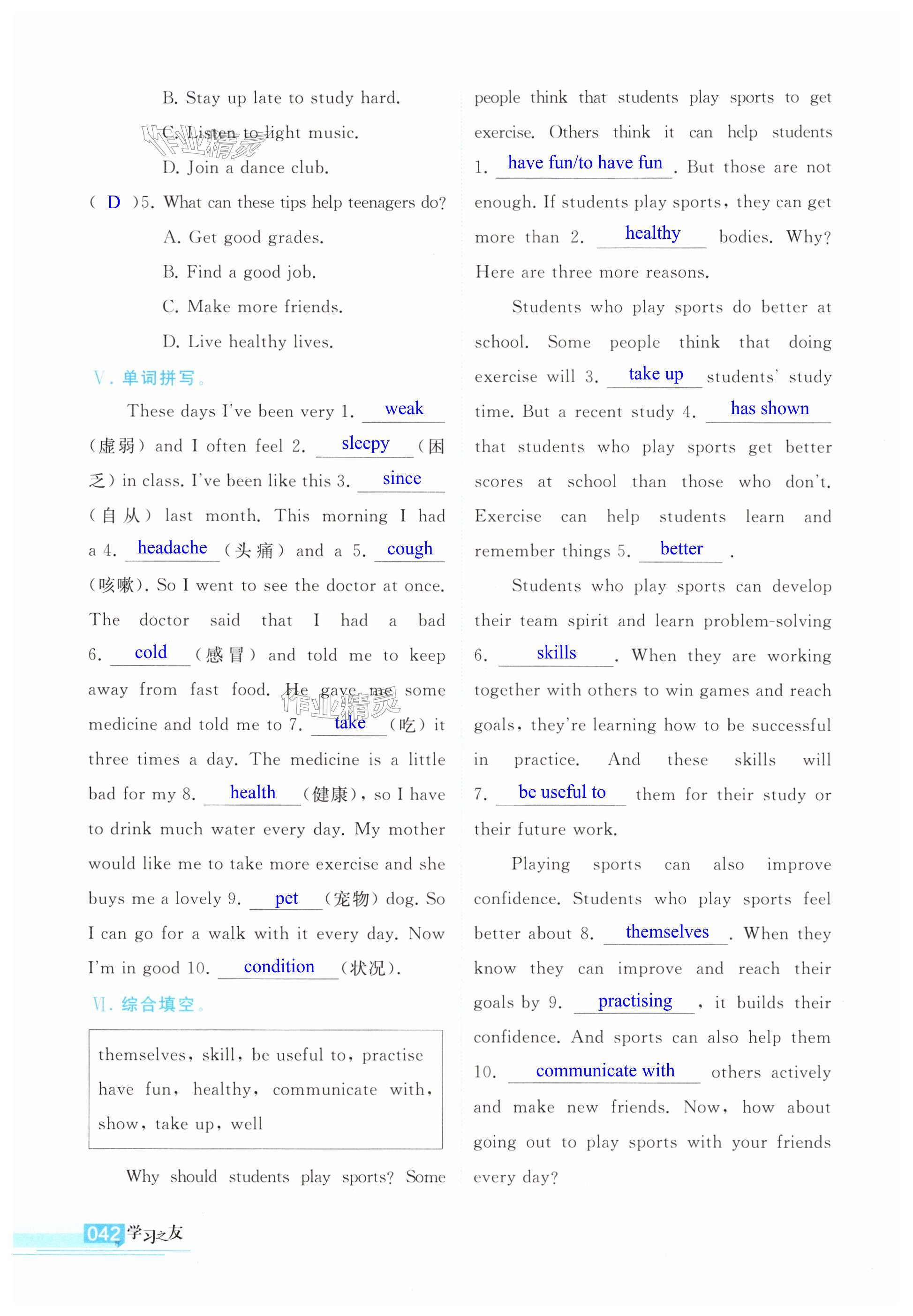 注:目前有些书本章节名称可能整理的还不是很完善,但都是按照顺序排列的,请同学们按照顺序仔细查找。练习册 2025年学习之友八年级英语下册外研版 答案主要是用来给同学们做完题方便对答案用的,请勿直接抄袭。