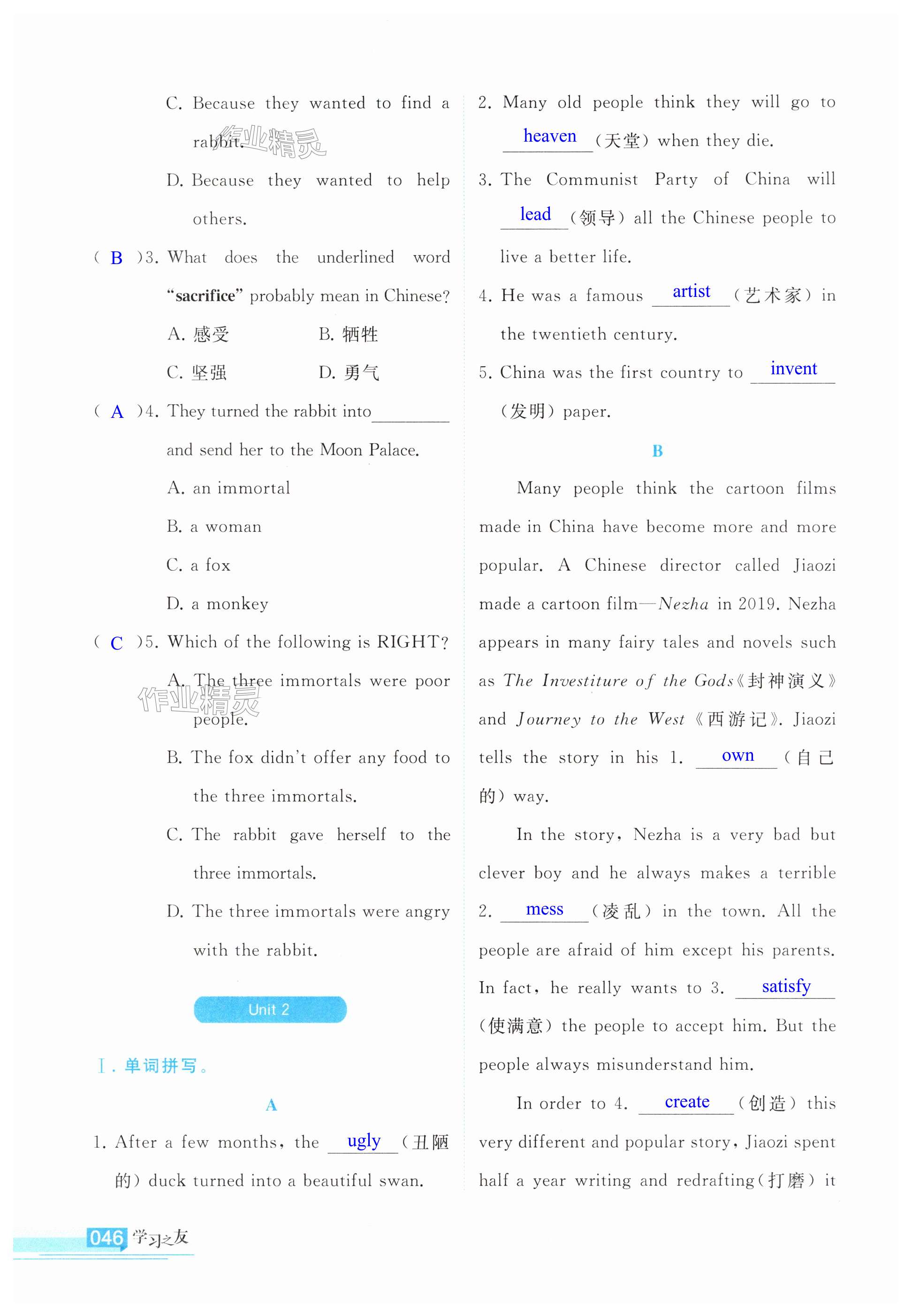 注:目前有些书本章节名称可能整理的还不是很完善,但都是按照顺序排列的,请同学们按照顺序仔细查找。练习册 2025年学习之友八年级英语下册外研版 答案主要是用来给同学们做完题方便对答案用的,请勿直接抄袭。