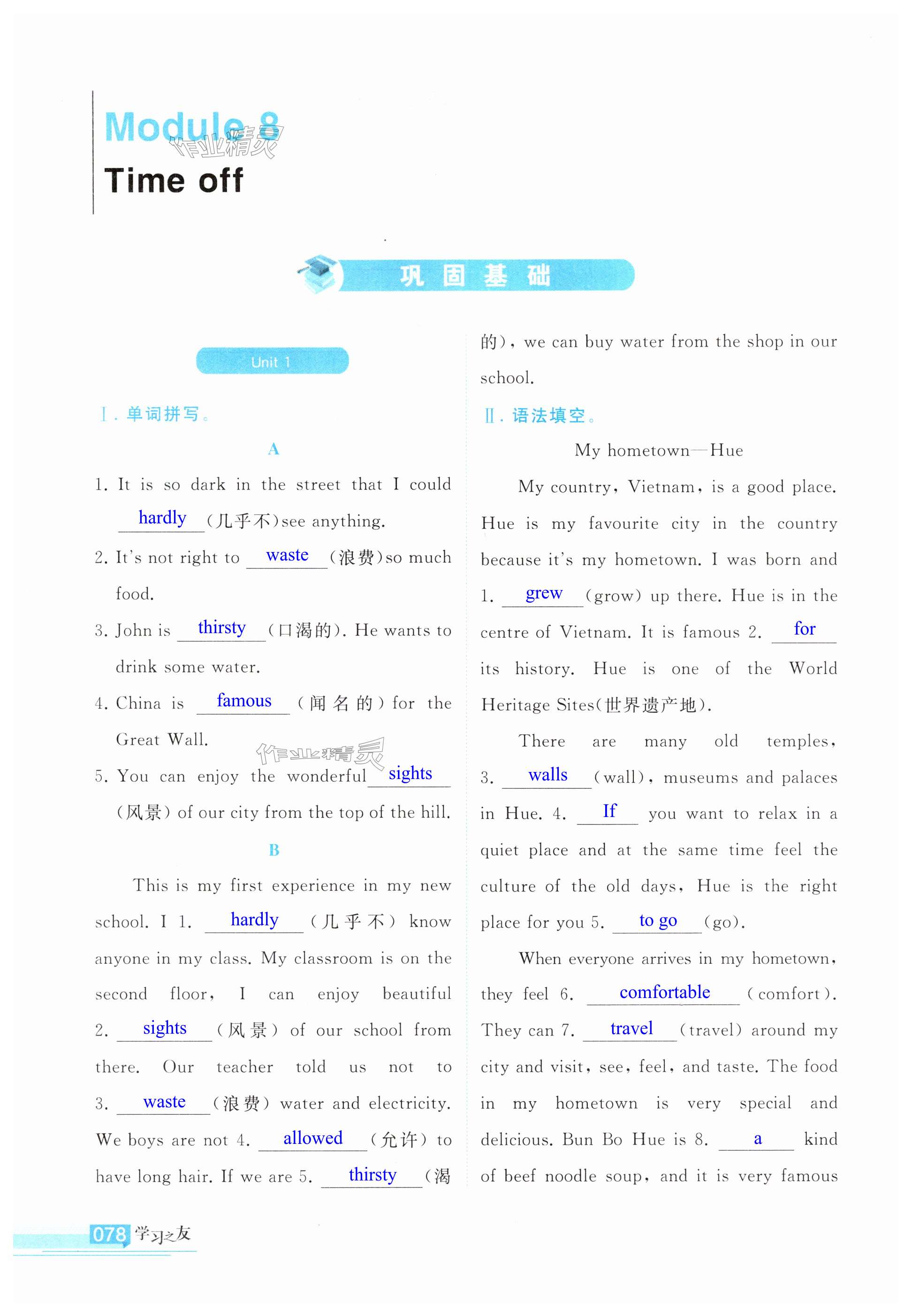 注:目前有些书本章节名称可能整理的还不是很完善,但都是按照顺序排列的,请同学们按照顺序仔细查找。练习册 2025年学习之友八年级英语下册外研版 答案主要是用来给同学们做完题方便对答案用的,请勿直接抄袭。