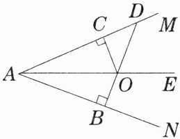 6.已知DB ⊥ AN于B,交AE于点O,OC ⊥ AM于点C,且OB = OC,如果∠OAB = 25°,则∠ADB = __________.