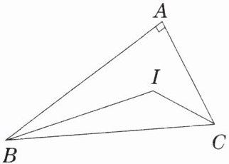 ∴∠IBC + ∠ICB =$\frac{1}{2}∠ABC+\frac{1}{2}∠ACB$ =$\frac{1}{2}(∠ABC + ∠ACB)$ =$\frac{1}{2}×90°$ = 45°