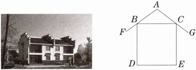 8.某市新农村建设推动了农村住宅旧貌变新颜,如图为一农村民居侧面截图,屋坡$AF$,$AG$分别架在墙体的点$B$,点$C$处,且$AB = AC$,侧面四边形$BDEC$为长方形. 若测得$\angle FAG = 110^{\circ}$,求$\angle FBD$的度数.