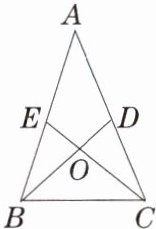 2. 在$\triangle ABC$中,$AB = AC$,$\angle ABC$,$\angle ACB$的平分线$BD$,$CE$相交于$O$点,且$BD$交$AC$于点$D$,$CE$交$AB$于点$E$. 某同学分析图形后得出以下结论: