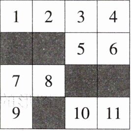 7.如图,是$4\times4$的正方形网格,把其中一个标有数字的白色小正方形涂黑,就可以使图中的黑色部分构成一个中心对称图形,则这个白色小正方形内的数字是 ________.