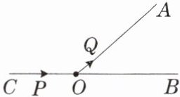1.如图,$\angle AOB = 60^{\circ}$,$C$是$BO$延长线上的一点,$OC = 10\ cm$,动点$P$从点$C$出发沿$CB$以2 cm/s的速度移动,动点$Q$从点$O$出发沿$OA$以1 cm/s的速度移动,如果点$P$,$Q$同时出发,用$t(\text{s})$表示移动的时间,当$t = $ ____________ 时,$\triangle POQ$是等腰三角形.