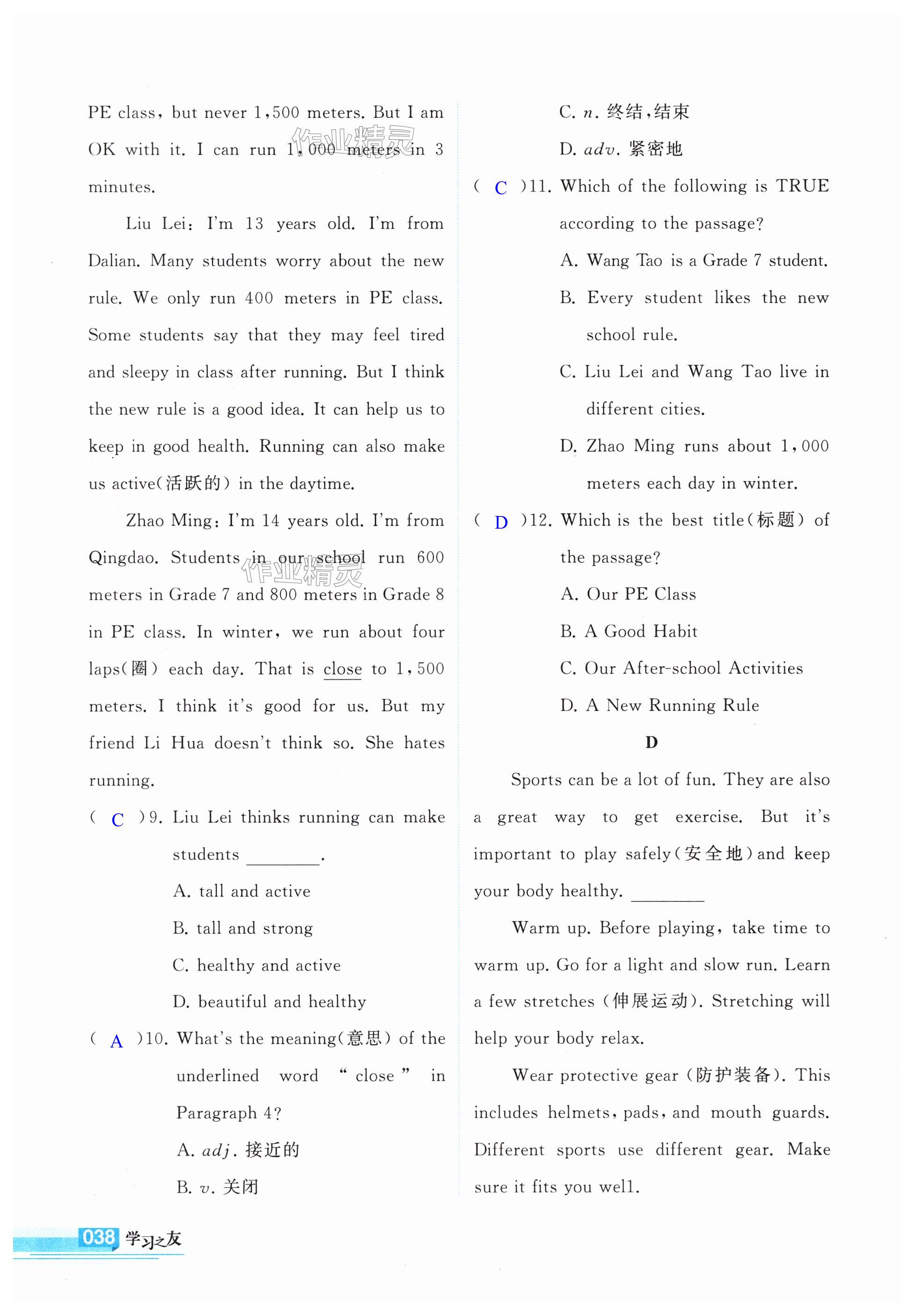 注:目前有些书本章节名称可能整理的还不是很完善,但都是按照顺序排列的,请同学们按照顺序仔细查找。练习册 2025年学习之友七年级英语下册人教版 答案主要是用来给同学们做完题方便对答案用的,请勿直接抄袭。