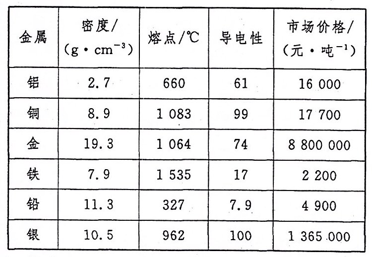 6.[教材习题变式]科学家发现一种新金属。根据图表信息推测其用途,错误的是 ( )