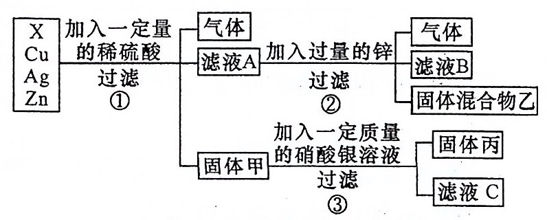 6. 化学实验室要从X、银、铜、锌四种金属混合物中分离某贵重金属。流程如图所示(未作特别说明的“固体”可能为纯净物或混合物,X在化合物中为+2价),下列说法错误的是( )