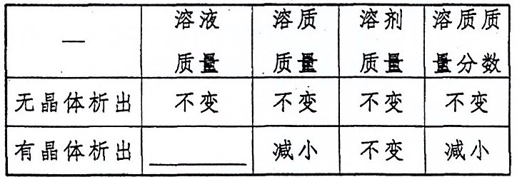 (1)温度变化时,饱和溶液中溶液质量、溶质质量、溶剂质量和溶质质量分数可以根据温度变化时是否有晶体析出进行判断。具体详情如下表所示。