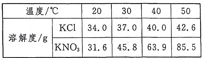 下表是$KCl$和$KNO_3$在不同温度下的溶解度,判断两物质溶解度相等时的温度范围:____。