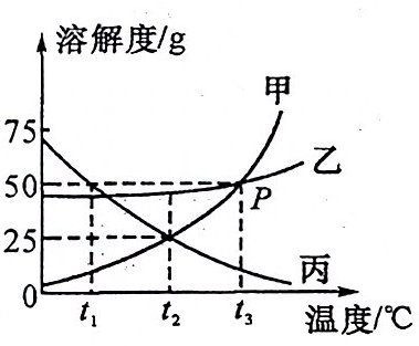 (2)$t_3℃$时,甲和乙的溶解度相等(合理即可)