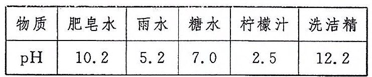 7.某同学取下列生活中的物质,测得其pH如下表所示: