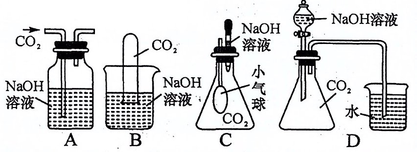 7.[创新实验]下列验证“CO₂与NaOH溶液反应”的装置中,不能观察到明显现象的是(装置气密性均良好)( )
