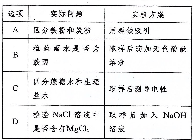 6. 化学知识可以解决生活中许多实际问题,下列实验方案不能解决相应实际问题的是 ( )