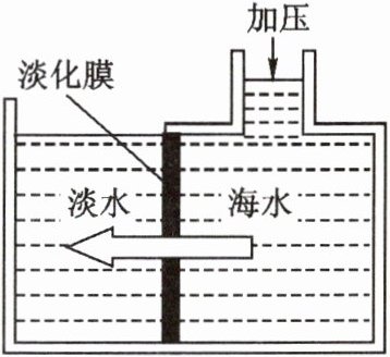 11. 海水淡化可采用膜分离技术。如图所示,对淡化膜右侧的海水加压,水分子可以透过淡化膜进入左侧淡水池,而海水中的各种离子则不能通过淡化膜,从而得到淡水。对加压后右侧海水成分的变化进行分析,正确的是 ( )
