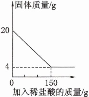 14.(1)16 g (2)56% 属于 (3)解:设参加反应的氯化氢的质量为x。 $Fe_{2}O_{3}+6HCl = 2FeCl_{3}+3H_{2}O$ 160 219 16 g x $\frac{160}{219}=\frac{16 g}{x}$ $x = 21.9 g$ 实验中所用稀盐酸的溶质质量分数为: $\frac{21.9 g}{150 g}×100\% = 14.6\%$ 答:实验中所用稀盐酸的溶质质量分数为14.6%。