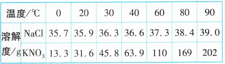 |温度/$\ ^{\circ}\text{C}$|$0$|$20$|$30$|$40$|$60$|$80$|$90$|