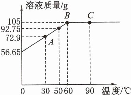 (3)将$55\ \text{g}$ ${KNO3}$固体加入$50\ \text{g}$水中,充分溶解,测得溶液的质量随温度的变化曲线如图所示。