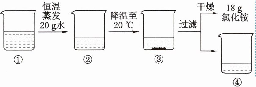 D. 若溶液①蒸发 $25 g$水,仍无氯化铵析出