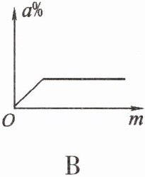 2. 在一定温度下,向一定量的氯化钠不饱和溶液中逐渐加入氯化钠固体,并搅拌。在此过程中,溶液的溶质质量分数(a%)随加入氯化钠的质量(m)的变化关系如图所示。下列图像正确的是 ( )
