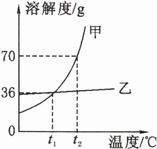 C. 将 t₂℃的甲溶液 170 g 降温至 t₁℃,析出的甲一定是 34 g